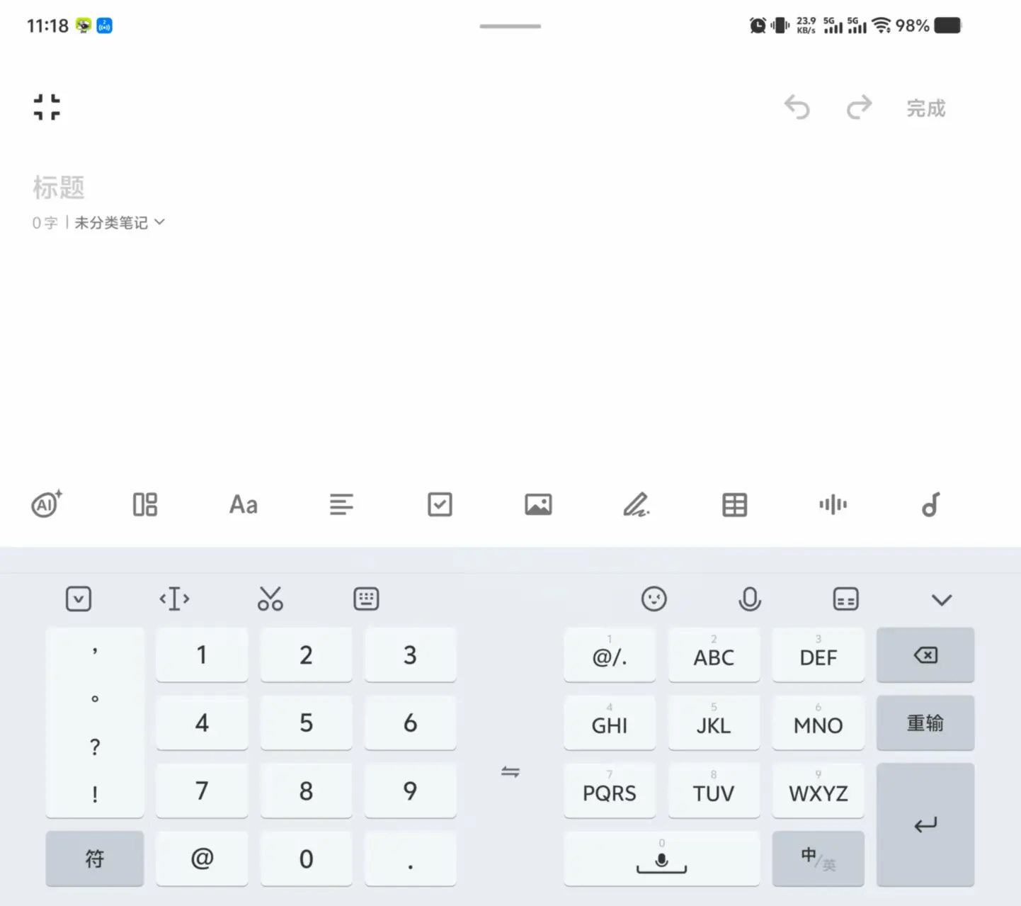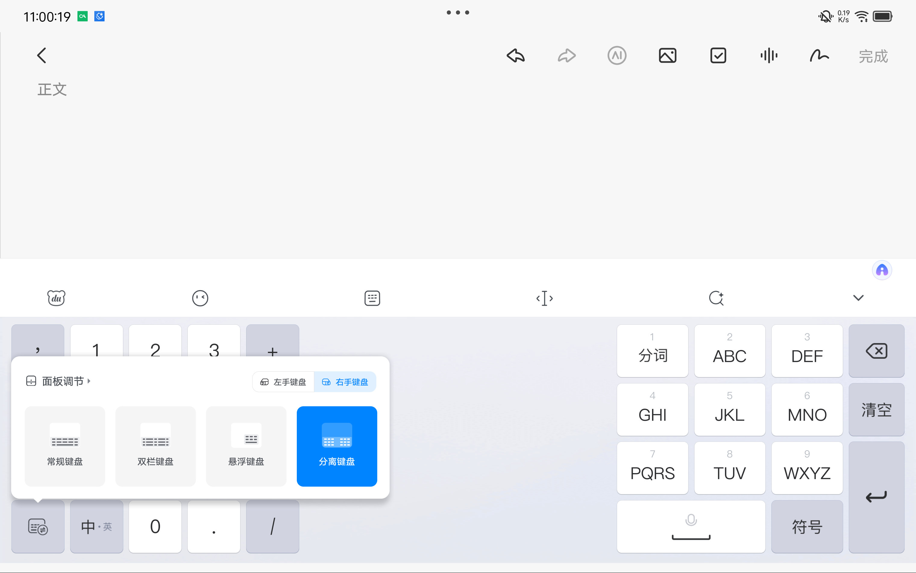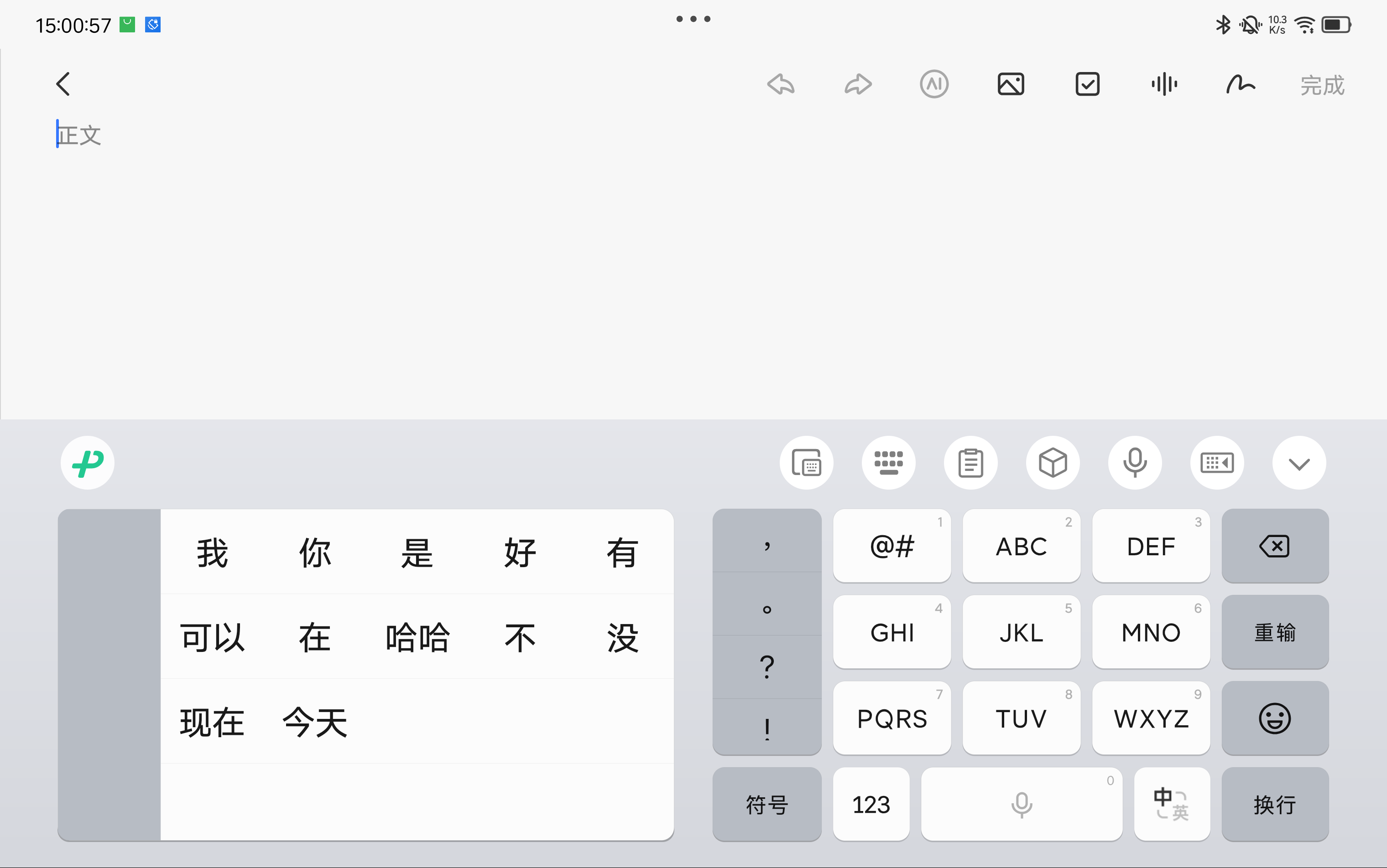 讯飞九键中间可以手写,这个设计让人眼前一亮,但它占了很大的空间,无法调整,我用手写的频率是很少的,没必要为了这个牺牲九键的空间。